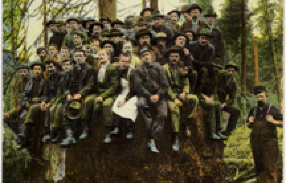 Tempot är långsamt i Redwood, särkilt om man går in på sidan då och då för en uppdatering och inte läser allt i efterhand. De korta texterna är direkt knutna till vykorten. Först kommer ett tiotal bilder på män som poserar i halvt genomsågade stammar. Senare visas fällda träd i skogen och stockar uppradare på tågvagnar. Jag anar att vi får följa träden genom hela industrin av klyvande, sågande och byggande. Man önskar att det skulle utmynna i en hälsning från de bevarade områdena med redwood. Redwoodträden har växt i Nordamerika i minst 20 miljoner år. 96 procent av alla fullväxta träd har avverkats. Det äldsta kända exemplaret idag är 2 200 år gammalt.