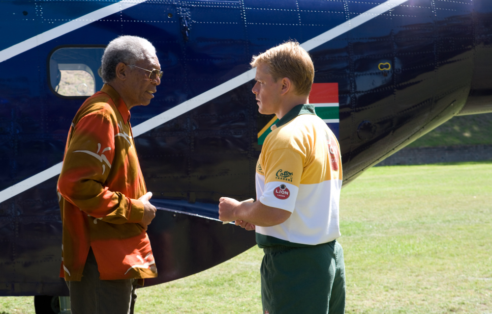 Freeman överraskar med att antyda mörka stråk bakom helgonförklarad figur och Damon övertygar återigen genom att hitta ett inre liv i en platt karaktär och kombinera det med sin sublima känsla för fysiskt skådespeleri. Hans lagkapten Francois Pienaar utvecklas trovärdigt från förvuxen jättebebis med för mycket muskler till en smidig och alert ledare på och vid sidan av planen.