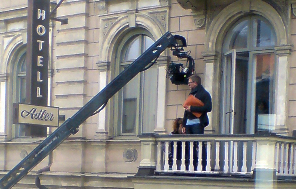 Jo, visst är det Daniel Craig som helt plötsligt uppenbarar sig. På med ett par glasögon, ett fotografi i handen, sen spelar han in sin del av scenen. Alla försöker få en bild av huvudpersonen, och trots avståndet märks det tydligt att det är en världsstjärna som är på plats.
