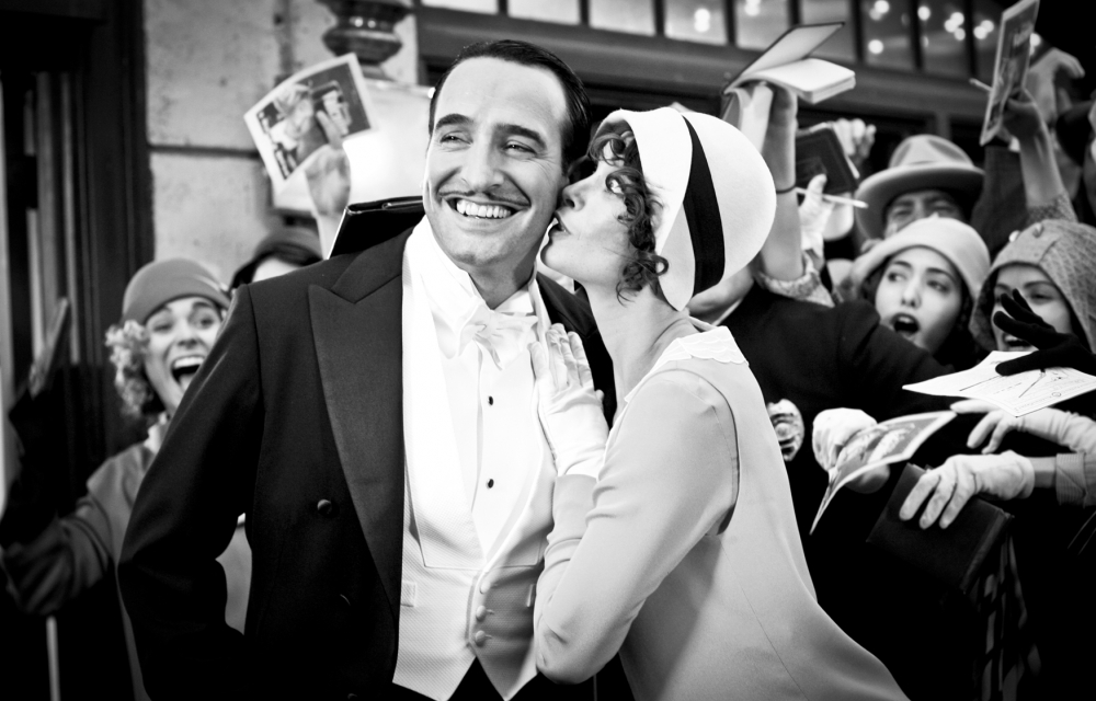 Även på andra plan är det en alldeles förtjusande kärlekshistoria. På höjden av en enastående karriär springer den självupptagne charmörskådespelaren George Valentin in i den unga och kämpande skådespelerskan Peppy Miller och det är uppenbart att det slår gnistor om paret. Jean Dujardin gör Valentin utan ett uns av dryghet och det är bara det allra första som slår en som en magnifik bedrift. Omständigheter gör dock att Valentin avstår från att inleda en affär med Peppy. Andra omständigheter, närmare bestämt talfilmens intåg, gör att han får se sin stjärna dala tillsammans med börsfallet i den stora depressionen. Alltmedan Peppys karriär såklart skjuter fart i det ljudliga mediet.