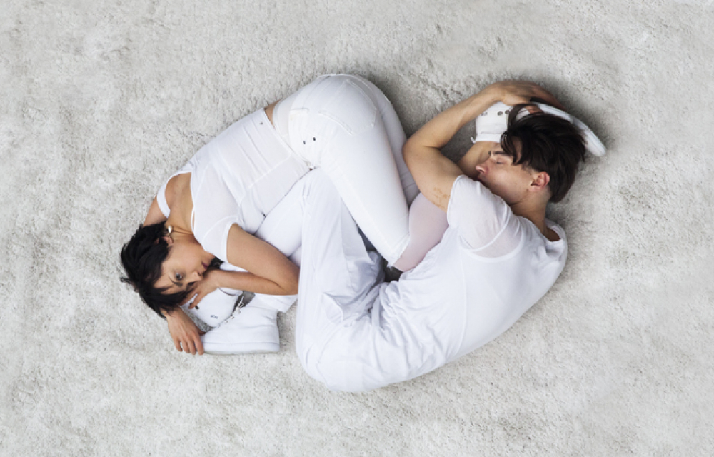 Men regissören kommer aldrig, liksom greven i Fröken Julie. Istället iscensätter huvudrollsinnehavarna ett eget laddat kammarspel i det avskalade scenrummet – en vitmålad lagerlokal i Brooklyn, New York. Pop-pojke möter utlevande feministisk performance. Som för att understryka krocken mellan huvudpersonerna hänger bilder på John Lennon och Yoko Ono på väggarna.