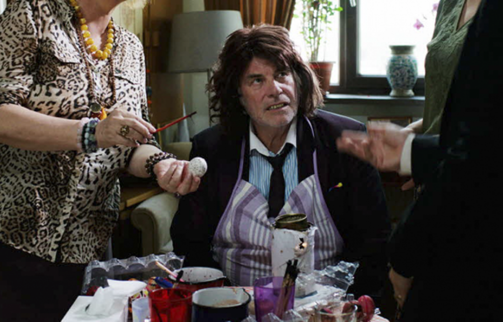 Ensamma åldrande män med förlorade illusioner, märkta av sprucken gemenskap (samhällelig såväl som privat), har genom filmhistorien inte sällan gestaltas väl av etablerade komiker som går ur sitt fack. Som när tokrolige Carl Gustav Lindstedt fick göra figurer som gråe Martin Beck, eller när Bill Murray användes av Sofia Coppola i Lost in Translation. Maren Ades genidrag är att göra tvärtom. Peter Simonischek är ingen större kändis, och listan av roller i hans långa filmografi präglas knappast av skojfriskhet. Här får han dock tillfälle att bryta mot sin image. För Winfried är en fullkomligt oförutsägbar man. Han provocerar ständigt sin omvärld på olika sätt – med practical jokes och med anarkiska utspel. nbsp; I umgängeslivet tolereras kanske hans skojfriska upptåg, men hans utanförskap är tydligt. Och när hans enda barn, dottern Ines (Sandra Hüller), besöker den lilla tyska hemstaden strax innan sin födelsedag manifesteras bilden. Hon lockas inte av något samröre med pappa. Winfried framstår en skitjobbig person, en som de flesta helst undviker.