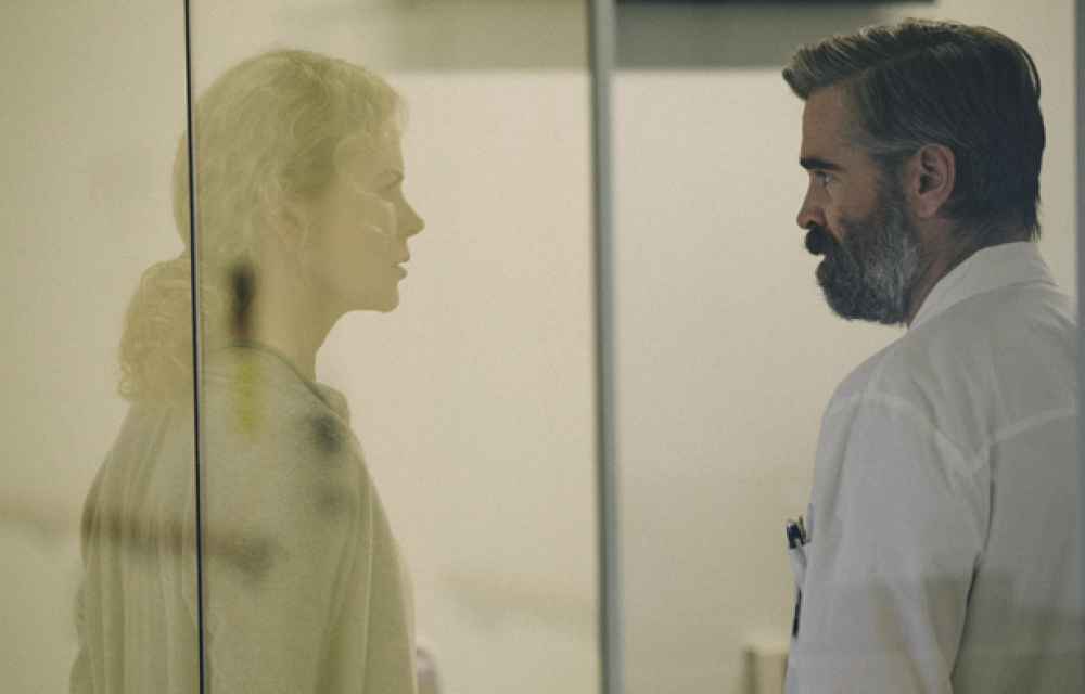 Språkkritiken i The Killing of a Sacred Deer är annorlunda konstruerad. I den värld där kirurgen Steven (Colin Farrell) verkar tycks allt inledningsvis likna den värld vi lever i. Det är år 2017, människor arbetar, använder mobiltelefoner och kör bil. De talar med varandra om vardagligheter i precis samma ordalag som vi gör och konsumerar ungefär samma slags varor. Men sättet de utbyter erfarenheter på skaver snart mot hur den värld vi är vana vid fungerar. Orden kommer på fel ställe. Reaktionerna på saker som sägs och händer tycks inadekvata. Som när en plågsamt stel bankett omtalas som en riktigt lyckad kväll. Eller som när Steven och hans hustru Anna (Nicole Kidman) väljer den femtonåriga dotterns första menstruation som första samtalsämne på ett sofistikerat mingelparty. Vi känner igen orden och deras betydelser, men inte det sociala spelet kring användningen av dem. Känslor och sättet att uttrycka dem på är strikt kontrollerat, men på ett sätt som gränsar till kaos snarare än till perfektion. Därför är det så svårt att förstå relationen mellan Steven och den sextonåriga pojken Martin (Barry Keoghan) när den först presenteras. De möts i lönndom i parker och på små kaféer. Är det en sexuell relation? Har de familjeband? I en värld med en komplett nollställd kommunikationspraktik försvinner de sociala koder vi är vana att tolka efter. Vardagslivets omdöme och logik får ge vika för kaos och oförutsägbarhet. nbsp;