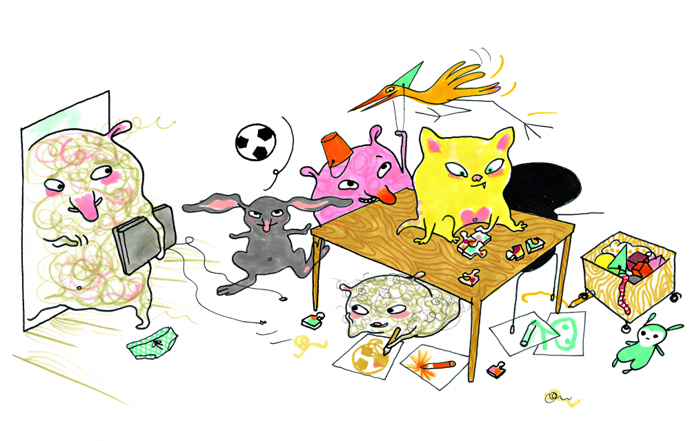 – Stina Wirsén har en väldigt speciell stil där linjerna är viktiga och teckningarna ger ett nästan hastigt intryck. Det är uttrycksfulla linjer med färger som söker sig utanför konturerna med snirkliga och brokiga former, beskriver Maria Malmberg Wallin.