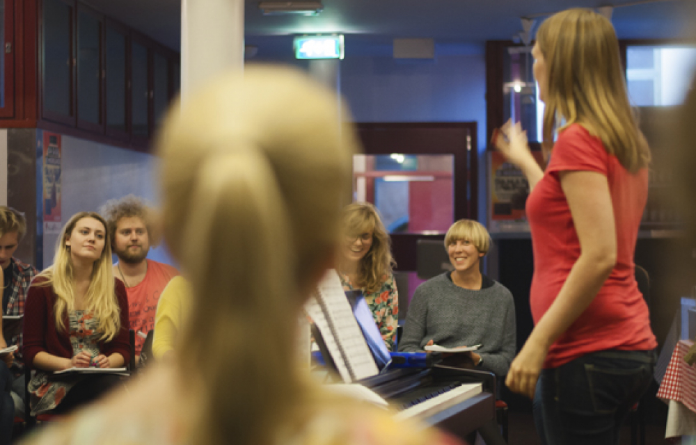 Dirigent Malin Strömdahl leder Norrlands nations körs repetition.