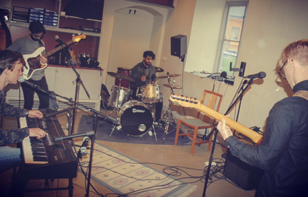 – I triangeln trängdes 40 personer för att lyssna på oss – det blev ett jävla tryck, säger Nils och börjar diskutera med bandet hur de kan göra Uppsala ännu större på pop-kartan.