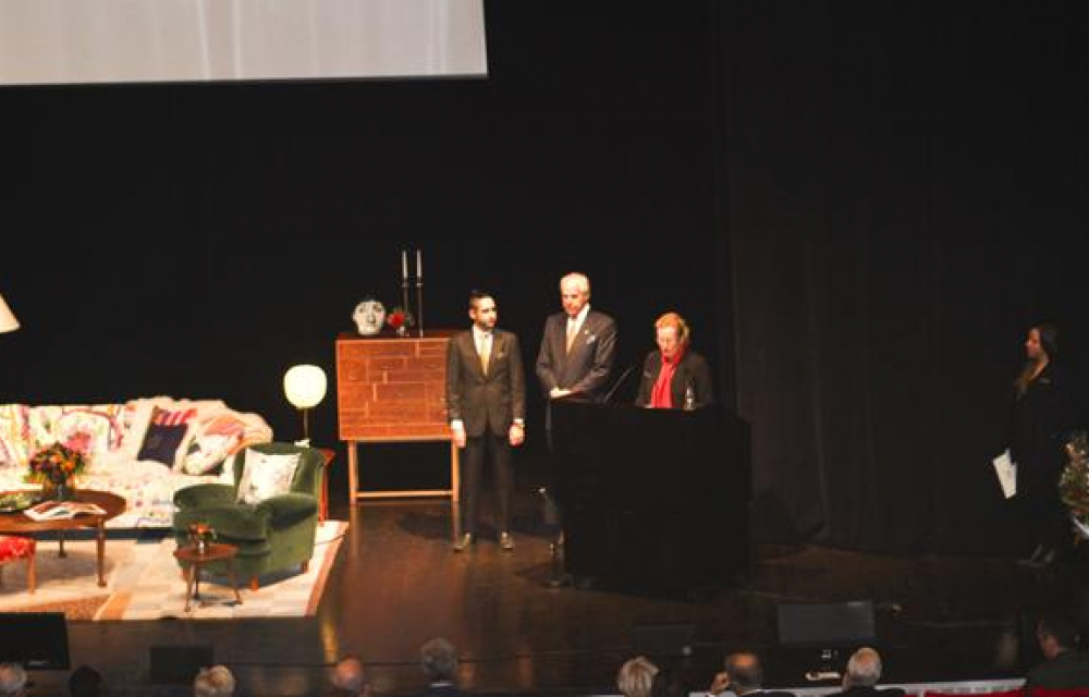 2016 års Anders Wall-föreläsning, med stipendiaten Allen Ali Mohammadi, Anders Wall och rektor Eva Åkesson.