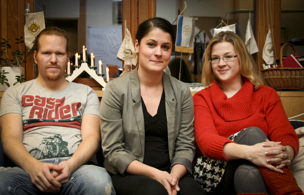 Björn Berntsson (till vänster) och Sara Sjöberg (till höger) från Rindi träffade Uppsala studentkårs ordförande Karin Nordlund.
