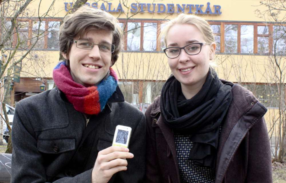 Henrik Axelsson, master i samhällsplanering, andranamn på listan och Caisa Lycken, juriststudent, förstanamn på listan. Personlig sak: En mobiltelefon. ”Vår politiska agenda handlar om samtal och vi vill ringa in nästa generation att jobba med gröna frågor”.