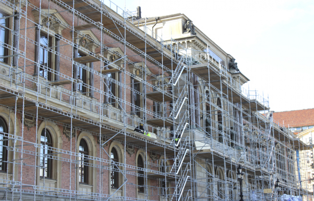 Natten mot söndagen kallades polis ut till universitetshuset. Detta sedan sex personer klättrat på byggställningarna och tagit sig upp på taket.