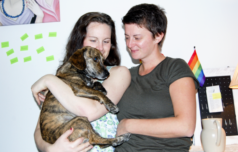 På väggen i det ombonade lilla inackorderingsrummet på Kungsgatan sitter gröna post it- lappar. Där står påminnelser för paret Magdalena Erixons och Sofia Nylanders vardag, som att göra studieuppgifter och gå promenader med hunden Bert. En har texten ”queer gud”. Det är temat för onsdag kväll, då de gemensamt ska gästa Universitetskyrkans och SFQ Uppsalas regnbågskväll.