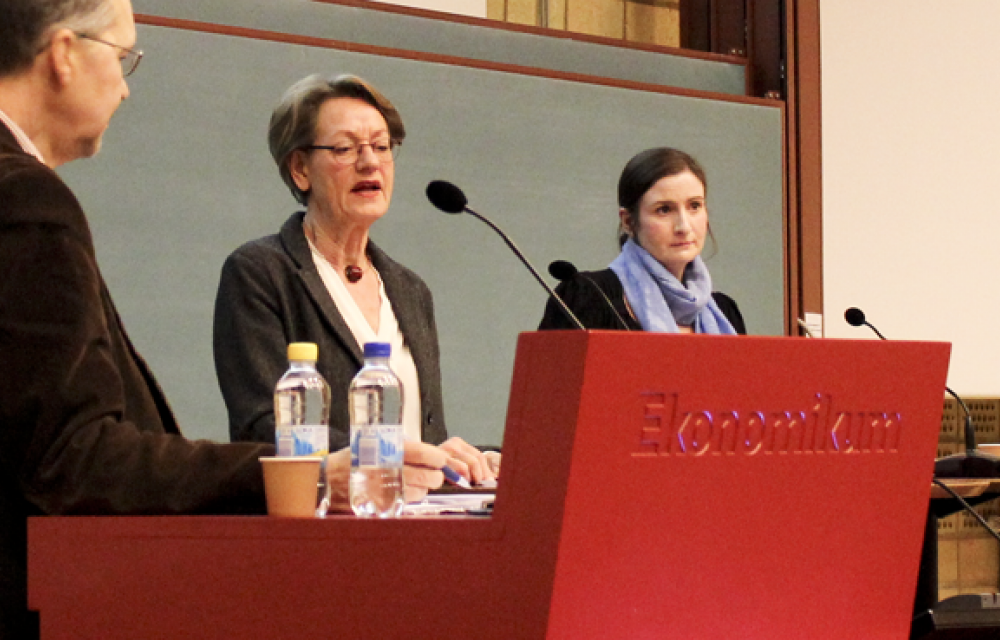 - Ibland känns det som att man får gå tillbaka till bas-ABC i marknadsekonomi när man diskuterar med Feministiskt Initiativ, svarar Birgitta Ohlsson och får med sig skratt och applåder.