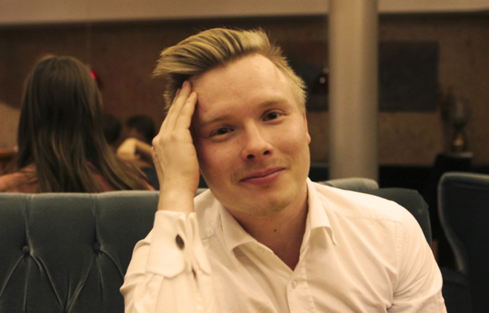 Sällan har jag skrattat så mycket framför skärmen som när karaktären Pernilla berättade att hon kommit över sitt bögberoende, för att i nästa scen avslöja att hon i själva verket bara har ersatt bögarna med en same. Nu sitter samen från humorprogrammet ”Bauta” i SVT Play och dricker kaffe med mig på Café Årummet. Klädd i vit skjorta har Olov-Anders Sikku precis kommit hem till Uppsala efter en lång dag på Utrikesdepartementet, där han gör praktik.