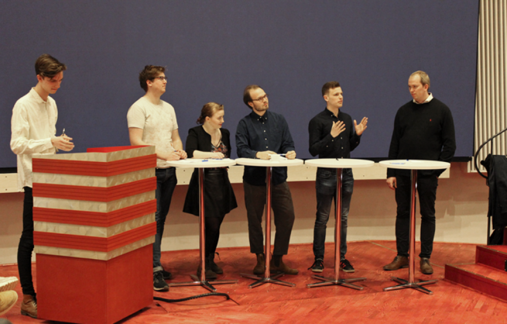 Kaffet står på plats utanför Humanistiska teatern och flera besökare balanserar sina plastkoppar in genom dörren och ser sig om efter en bra plats att sitta. Tobias Hamfelt, en av initiativtagarna till debatten och kvällens moderator, skannar av publiken med blicken. Först hade sektionen bara tänkt bjuda in representanterna för partierna till ett möte för deras medlemmar, men det slutade med ett öppet evenemang i den pampiga teatern.