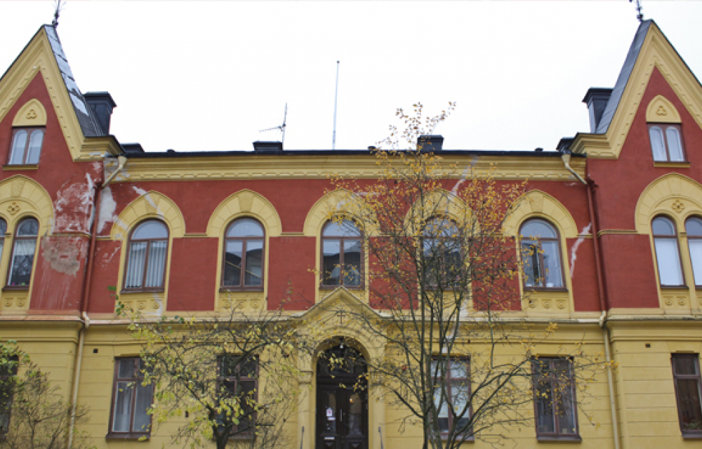 Det välbevarade studenthemmet Norrbyhus byggdes under slutet av 1800-talet för att främst husera teologstudenter, vilket det gör än idag. Jag och Gustav Andersson tillbringar en längre stund i husets salong vid en stilig soffgrupp. Rummet är fyllt av tavlor i tunga guldramar. Här bor tjugotre studenter i egna rum, och så såklart Elof Sundin, husets tjugofjärde medlem. Han gör sig synlig just här, där hans doktorsdiplom pryder en av väggarna, bredvid den ståtliga kakelugnen.