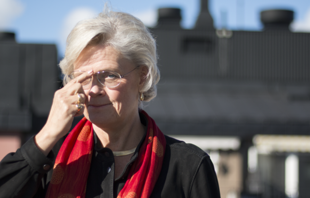 Carola Lemne förespråkar möjlighet till sekretess i inledningen av processen vid rektorstillsättningar. Hon håller dock med om att processen i ett senare skede bör bli mer öppen för att ge hörandeförsamlingarna möjlighet att påverka. Samtidigt måste konsistoriet tillsäkras ett inflytande över rektorstillsättningen. Med händerna markerar hon de två debattlägren på bordsskivan.