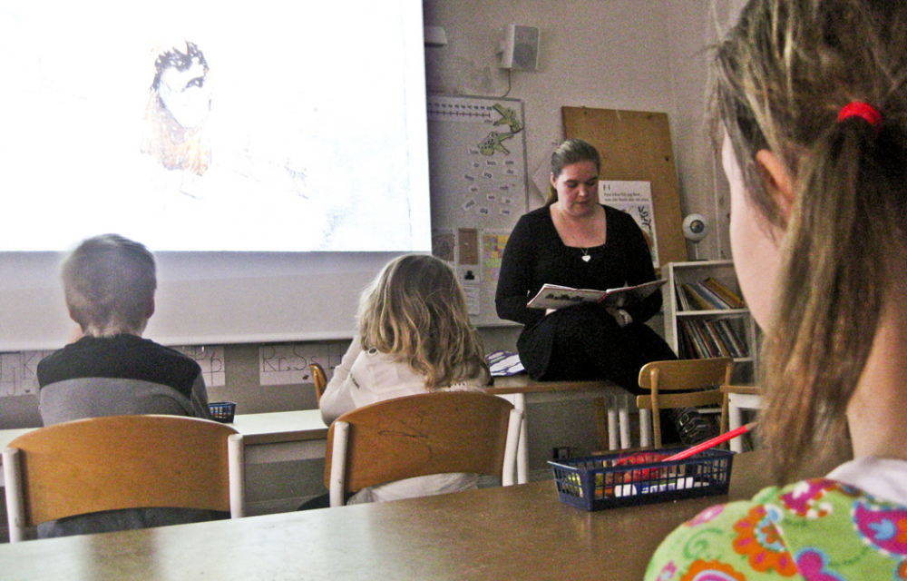 När sjuåringarna sedan berättat att smaklökarna sitter på tungan, att odör betyder lukta illa och att citron smakar surt är det dags för Johanna att ha en egen lektion. Hon ska läsa ”Flickan med svavelstickorna”, av HC Andersen, medan hon visar interaktiva bilder med projektorn. Takbelysningen dämpas, några barn flyttar sig närmare den nedrullade vita duken och Johanna sätter igång. Barnen lyssnar intresserat på hennes lugna röst och följer bildspelet om den fattiga flickan som inte har någonstans att bo.