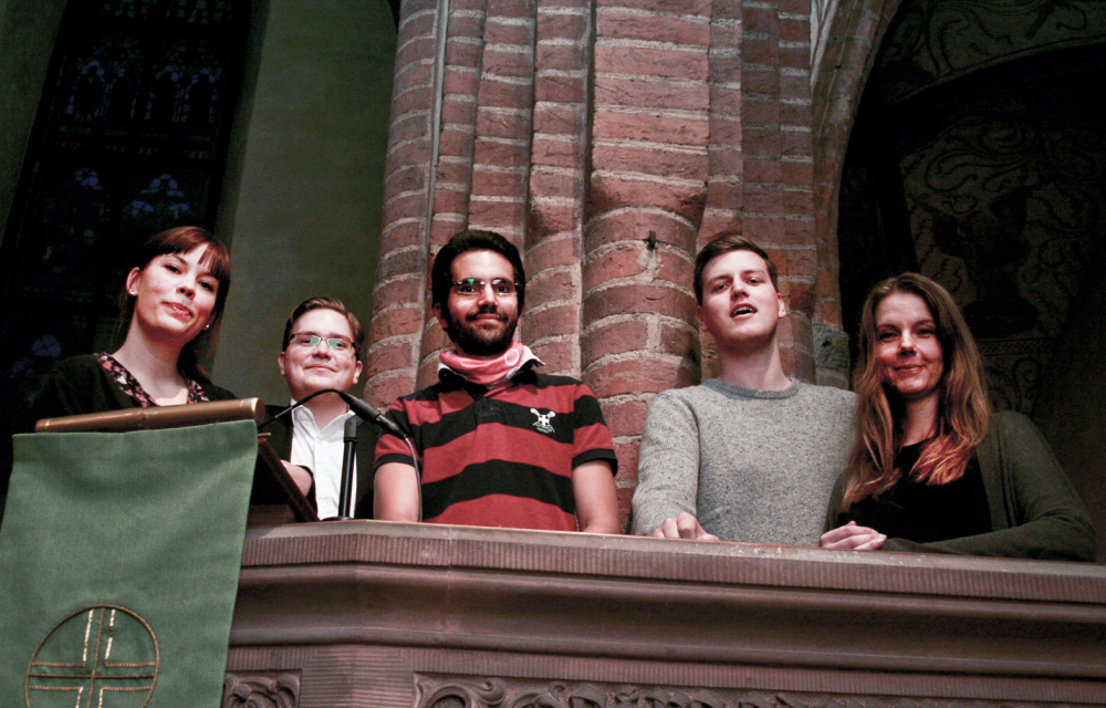 Från vänster: Malin Persson: Har 3,5 år kvar på utbildningen, vill gärna arbeta ”i en bruksortsförsamling där det kan vara lite kärvt”. Harald Götlind: Går sin första termin, kan tidigast vara klar om 5,5 år och vill gära hem till Dalarna för att arbeta. Omar Ud-Din: Har läst på deltid sedan 2007 och läser kurser på både Uppsala universitet och Johannelunds teologiska högskola. Vill gärna arbeta hemma i Stockholm. Jimmy Werf: Har läst sedan 2007 – planerad prästvigning i juni 2013. Anna Myrén: Studerar på masterprogrammet med inriktning systematisk teologi med livsåskådningsforskning, med ambitionen att forska. Prästvigning kan ske om ca 3,5 år. Kan tänka sig att arbeta som fängelsepräst, men också att vara i glesbygdsförsamling.