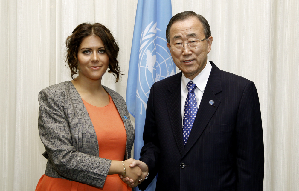 HANDSKAKNING. Milischia Rezai och Ban Ki-Moon, FN:s generalsekreterare.