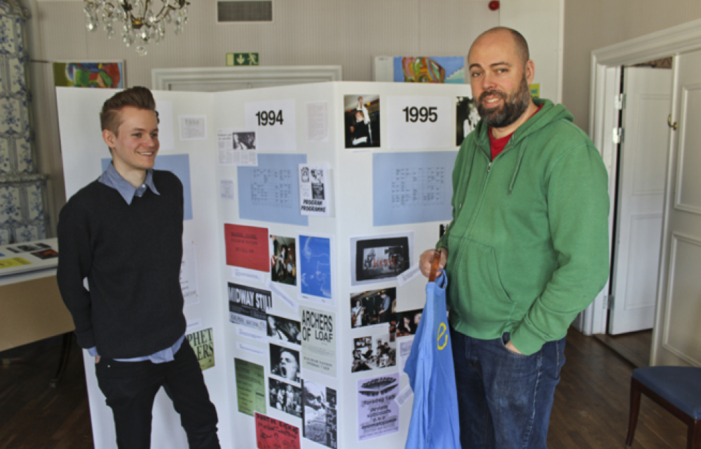 – Passande nog sammanfaller jubileet med att huset och scenen i källaren firar 25 år. Scenen möjliggjorde att kulturlivet som nationen haft kunde ta ett rejält kliv framåt. Som en följd av det blev vi ett av de hippaste ställena i landet, säger Joakim Medin som tillsammans med Anders Zaine har skapat utställningen.