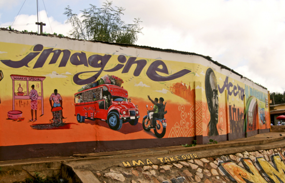 Projektet ”Imagine Accra” lät lokala konstnärer i området Nima visa upp sina drömmar om framtidens Accra.