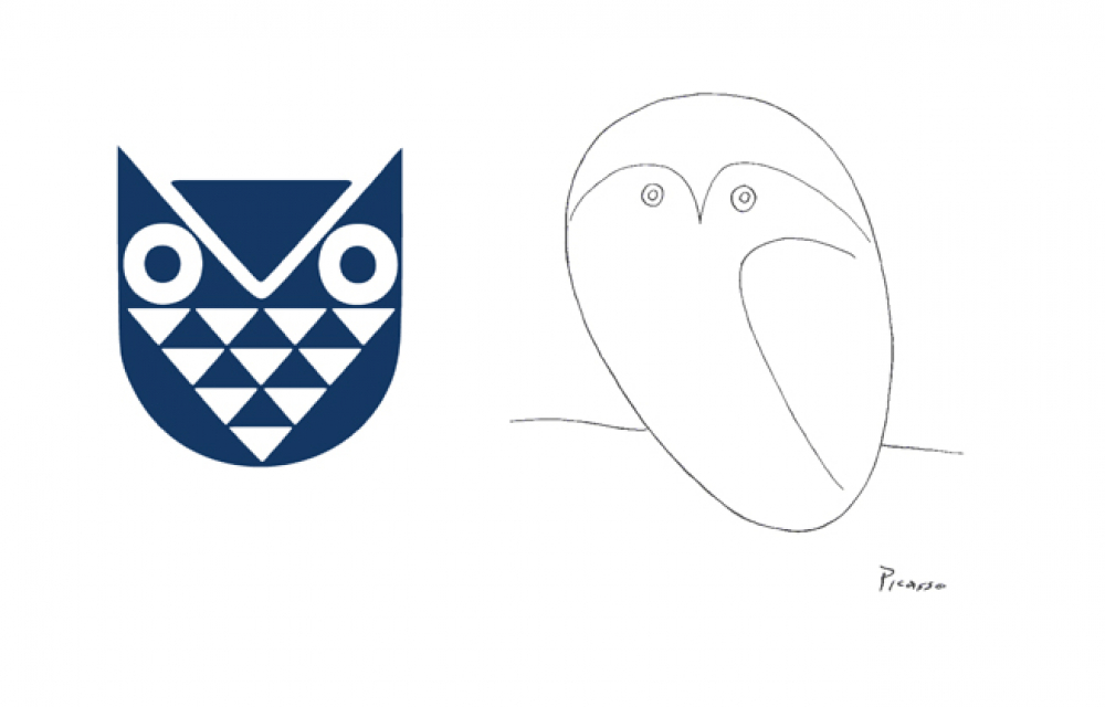 Olika ugglor. Uppsala studentkårs och Ockupera universitetets – den senare en lånad Picassoteckning.