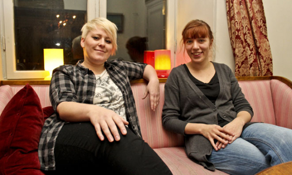 From left to right: Maria Ovezik, 24, Greece, immunology and microbiology; Angeliki Sitara, 23, Greece, applied biotechnology. (Photo: Miriam Hauertmann)