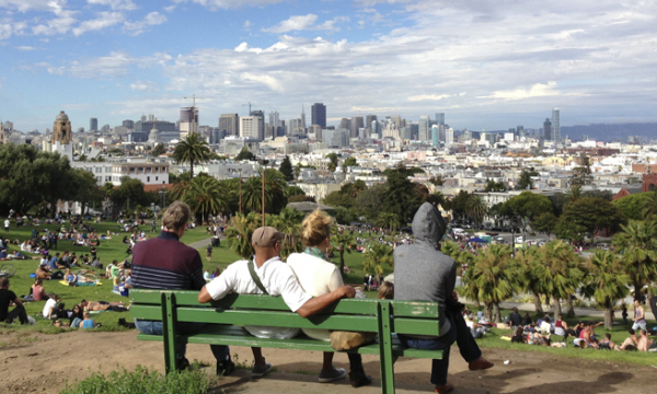 From left to right: Paschalis, 25, Greece, ecology and conservation; Mathias Kleissl, 25, Austria, industrial management ; Cristina Rúbies Bedós, 23, Spain, Masters in digital marketing ; Lise Kiennemann, 19, France, political science. (Photo: Miriam Hauertmann)