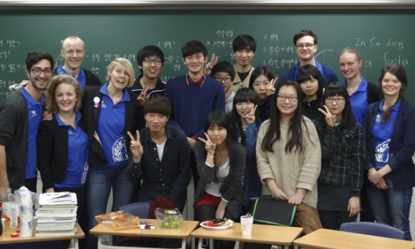 From left to right: Paschalis, 25, Greece, ecology and conservation; Mathias Kleissl, 25, Austria, industrial management ; Cristina Rúbies Bedós, 23, Spain, Masters in digital marketing ; Lise Kiennemann, 19, France, political science. (Photo: Miriam Hauertmann)