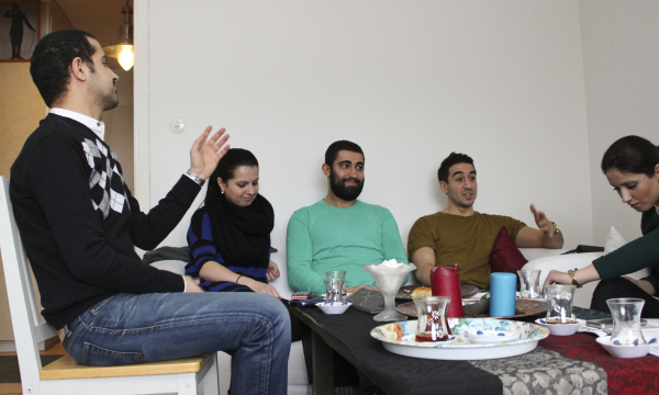 From left to right: Guru Mahan Rachaputi, 28, India, Masters in Embedded Systems; Amal Trabelsi, 24, Tunisia, Development studies in Uppsala, Political Science in Tunisia; Israel Mamani, 30, Bolivia, Masters in Investment Treaty Arbitration. (Photo: Miriam Hauertmann)