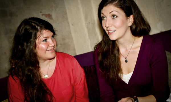 From left to right: Maria Ovezik, 24, Greece, immunology and microbiology; Angeliki Sitara, 23, Greece, applied biotechnology. (Photo: Miriam Hauertmann)