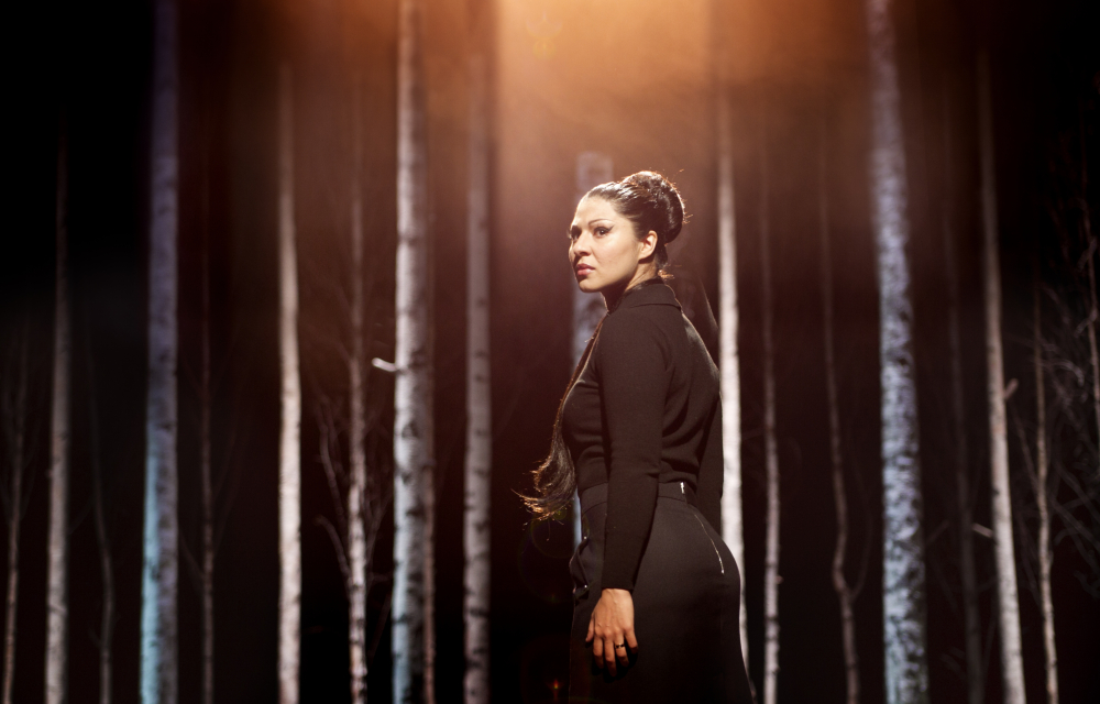 Bahar Pars som Anna Karenina i den ryska björkskogen.