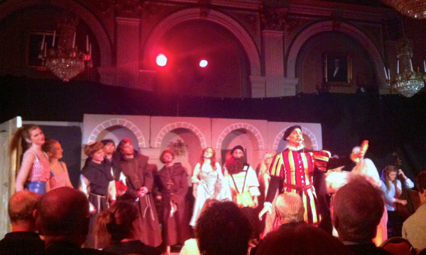 Exklusivt, oerhört studentikost och väldigt hysch-hysch, det summerar i runda slängar det jag vet om Juvenalorden som förening när jag anländer till i teatern. Så mycket mer vet jag heller inte efter att ha lämnat föreställningen men som publik till 2017 års spex, En rolig historia, fick jag i alla fall erfara vad ordens spex innebär. Då undertecknad är frekvent gymråtta kunde jag inte annat än dra paralleller till mitt andra hem. Ett spex signerat JO är ungefär som att ett vanligt nationsspex får för sig att fan, jäklar, snart är det Beach -17, och proppar sig full med aminosyror, proteinshakes, samt lägger om dieten till enbart kött och broccoli. Bänkpress, 1 RM, enorma gains. Resultatet efter en sådan satsning liknar det allmänna klimatet i ett genomsnittligt gyms område för fria vikter: biffigt, färgglatt, högljutt och (fram tills i år) testosteronstint. 2017 års spex uppförs nämligen av en blandad ensemble.