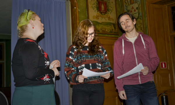 Stundtals blir det till ett slags metaskådespel – skådespelarna diskuterar vad de ska göra efter den här produktionen och hur man på bästa sätt lägger upp sin 30 sekunder långa hisspitch inför teaterchefen. Anna Thomasson, som är praktikant från Teaterhögskolan i Göteborg, berättar om sina erfarenheter och hur hennes nyss framförda sketch inte uppskattades av kollegorna på scen. Vidare fortsätter de att diskutera världsdramatikens stora, kvinnliga roller: Hedda Gabler, Ofelia och Julia – synd bara att alla tar livet av sig, kommer de fram till och granskar istället stereotypiska kvinnoroller.