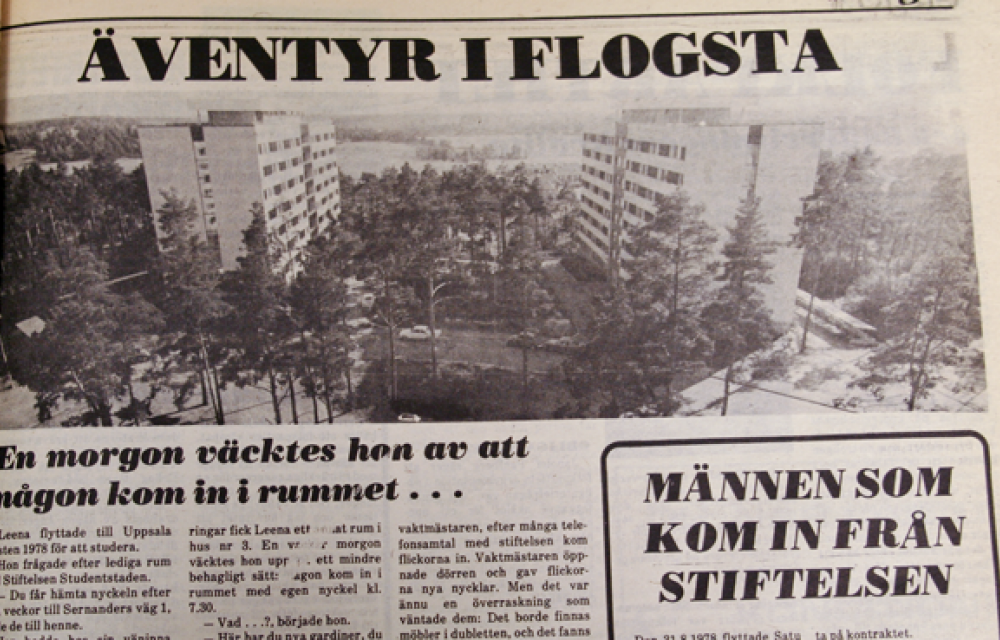 I måndags skrev Ergo om sabotage i Flogsta och allmänt missnöje med hyresvärden Heimstaden. Det är långt ifrån första gången tidningen rapporterar om problem med studentboendena på Sernanders väg. I nummer ett 1979 hittar vi en helsida med rubriken ”Äventyr i Flogsta”. Här uttrycker tre studenter sin besvikelse över Stiftelsen Studentstaden, som då ägde höghusen i Flogsta.