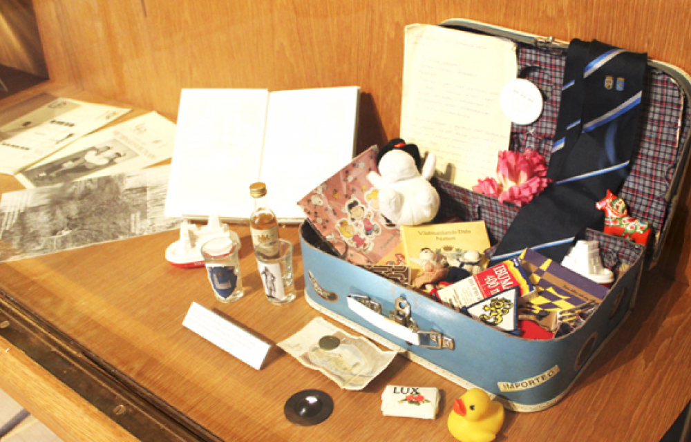 På utställningen finns bland annat den så kallade akutväskan att beskåda. Den skickas varje år mellan V-Dala och vännationen Östra Finlands nation vid Helsingfors universitet och uppdateras med nya föremål.