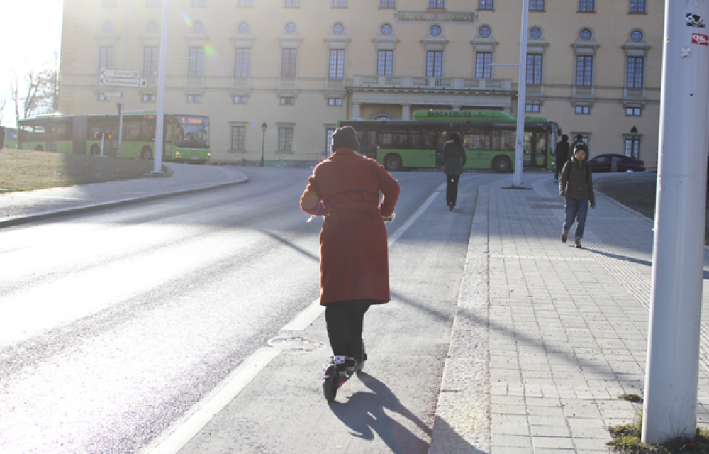 Det började dessvärre med ett antiklimax för den av oss som är mest tekniskt handikappad (ja, idag talar man hellre om funktionsvariationer eller åtminstone funktionsnedsättningar men i det här fallet handlar det om en total inkompatibilitet med materien). Efter att ha hört kollegornas berättelser om elsparkcykling i huvudstaden kändes en eldriven resa uppför Carolinabacken lika efterlängtad som att emigrera till Karibien när det är snöstorm (elsparkcykel är iallafall klimatsmart i jämförelse). Men så var det det där med att man måste ha en app, och att appen måste funka för att tingesten ska kunna rulla. Fråga inte en tekniskt handikappad person varför den inte gjorde det.